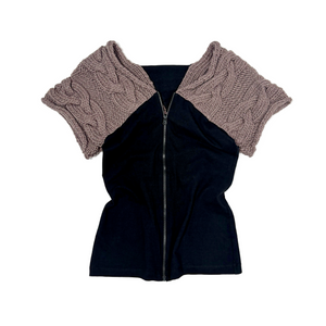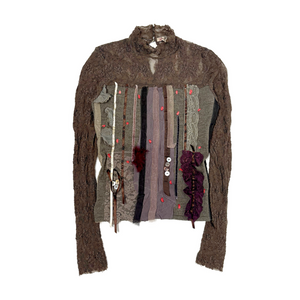 Textured ribbons & buttons lace turtleneck long sleeve top