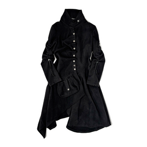 Asymmetric buttoned funnel neck coat dress